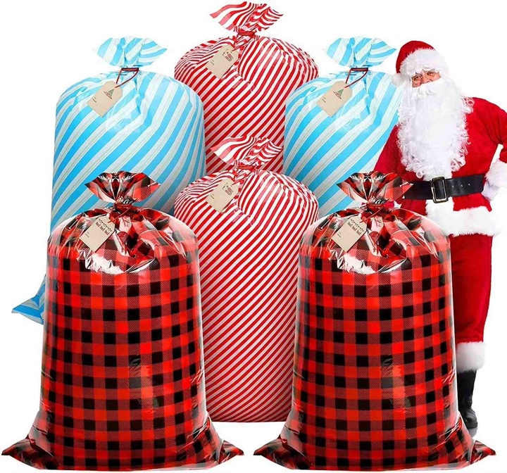 Evergreat Factory Direct Sale Médio Grande Santa Drawstring Plástico Embrulho Sacos Decorações De Natal